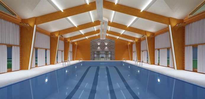 Спроектировать и построить физкультурно-оздоровительный комплекс мирового уровня в деревянном здании-срубе площадью 3000 м2. В его состав должен войти спортивный зал включающий включающий несколько спортплощадок. В акватермальную зону объекта вошли: плавательный бассейн, русская баня с традиционной каменной печью, отдельная баня «по-чёрному», хамам, финская сауна, зона галотерапии (мокрый флоатинг с соляной комнатой), солярий, снежная комната, холодная и горячая купели, гидромассажная ванна и спортивный зал включающий: бадминтонную площадку; тренажёрный комплекс; борцовское отделение. За 21 месяц (с 2014 по 2016 год) подготовили проектную документацию и провели полный комплекс строительно-монтажных, отделочных работ и инженерного обеспечения. В русской бане установили печь по запатентованной технологии: ее особенность заключается в циркуляции воздуха через тело печи.
